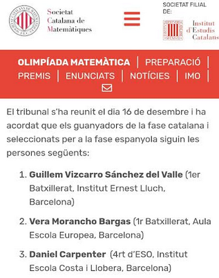 Aquest magnífic resultat li permetrà participar en la fase espanyola de l’olimpíada, on competirà amb els millors talents de tot l’Estat. Li desitgem molta sort i l’encoratgem a continuar excel·lint en el camp de les matemàtiques. Enhorabona, Guillem!