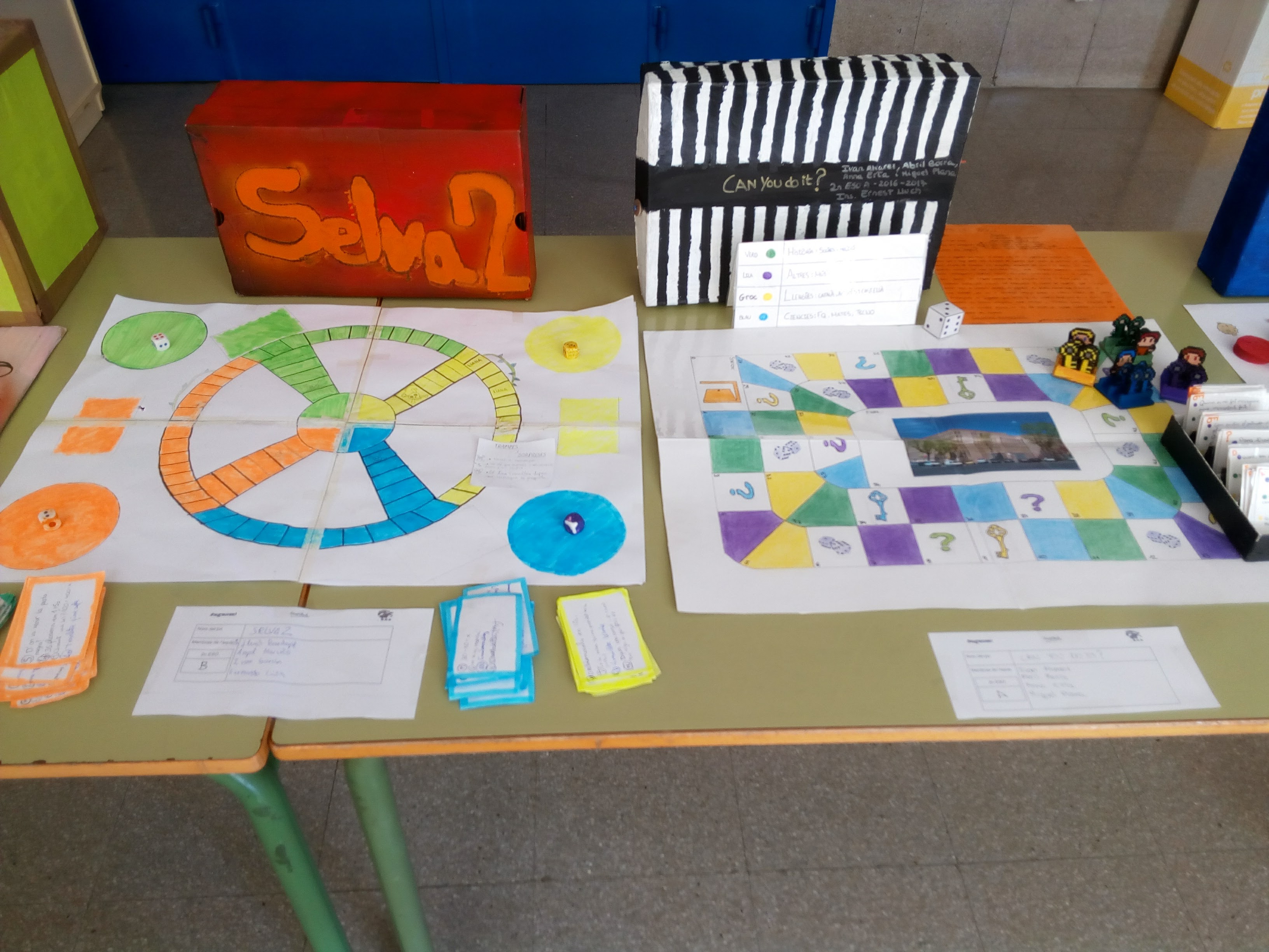 Podeu veure al vestíbul de l’Institut una mostra de jocs que formen part del crèdit de síntesi de 2n. Els jocs, amb preguntes relacionades amb totes les matèries, han estat dissenyats i realitzats pels grups formats per alumnes de 2n.